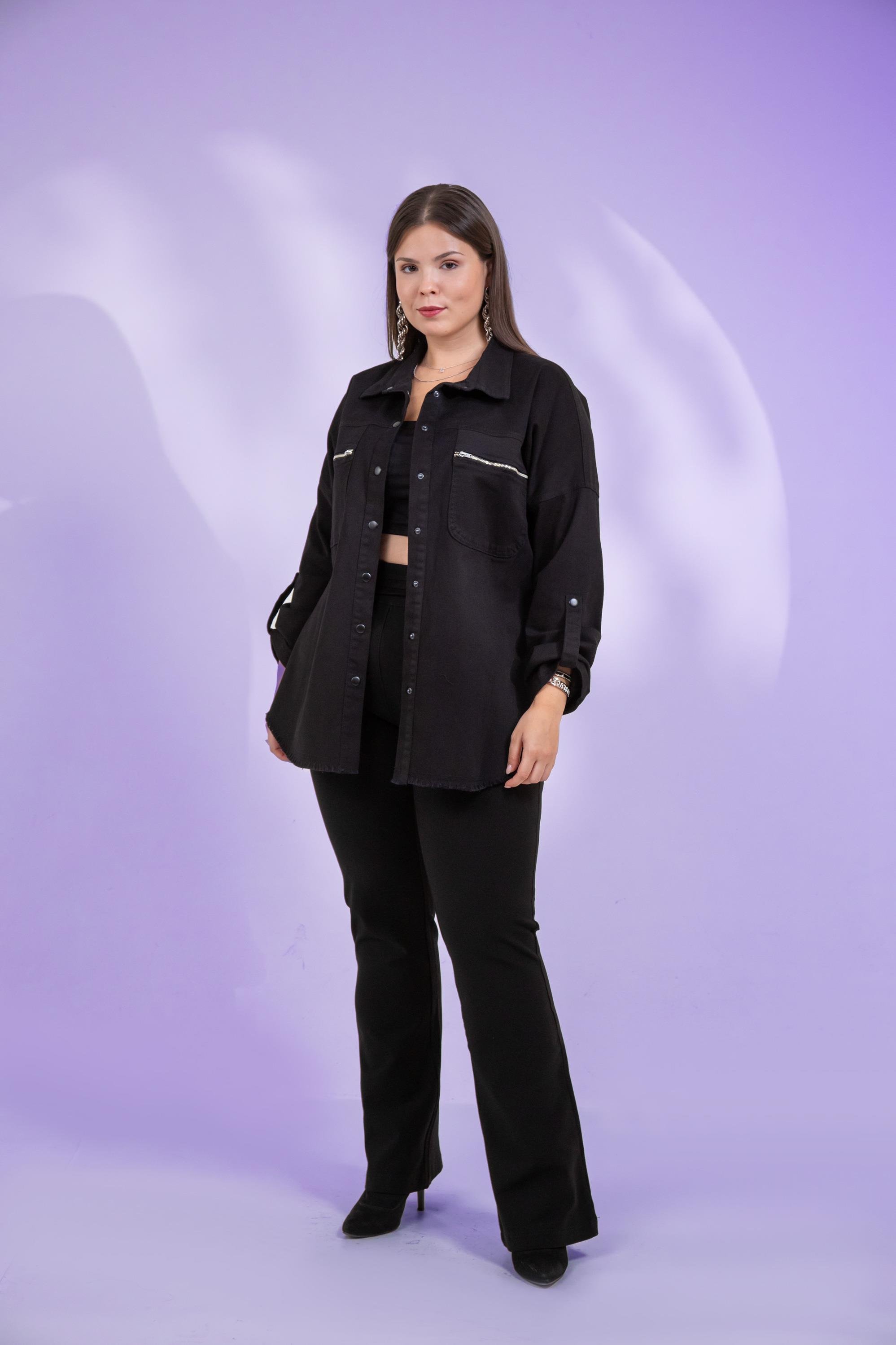 Büyük Beden 1211095 Cep Fermuarlı Gömlek Siyah (2121185675SİYAH)