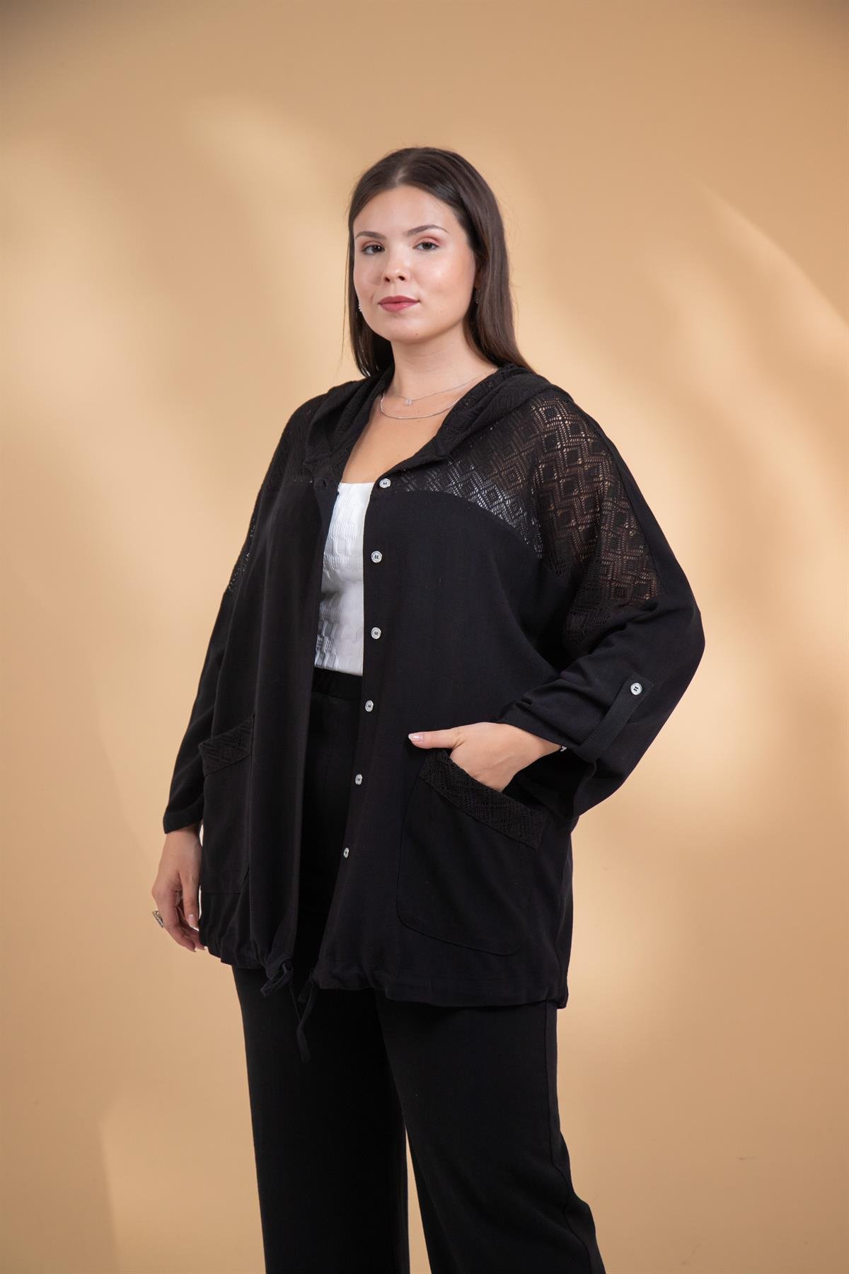 Büyük Beden 1212075 Dantel Detaylı Ceket  Siyah