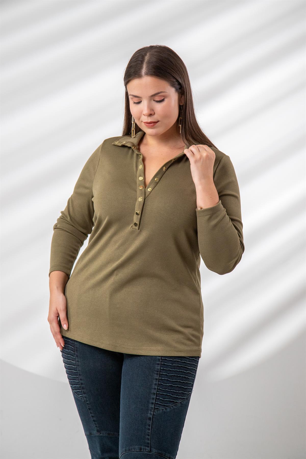 Büyük Beden 3330230 Çıt Çıt Detaylı Bluz Haki (2121185707HAKİ)