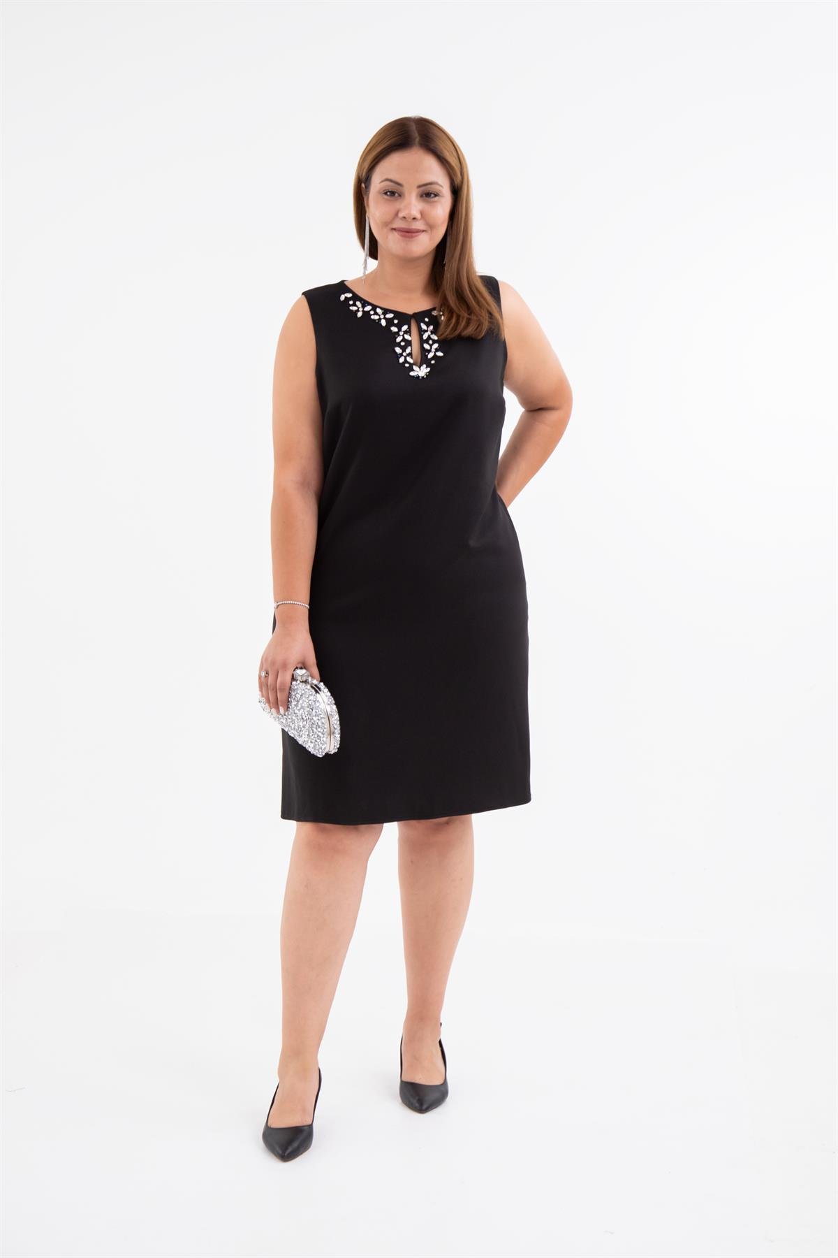 Büyük Beden 3330560 Taş Detaylı Kolsuz Elbise Siyah