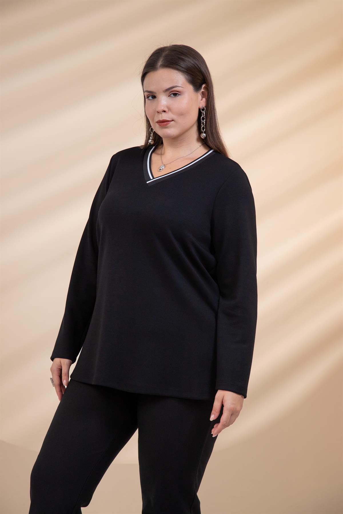 Büyük Beden 3330690 V Yaka Bluz Siyah (2121185980SİYAH)