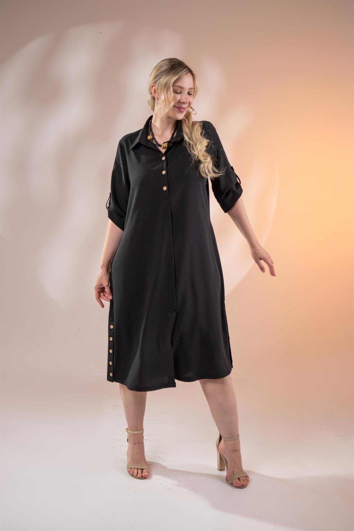 Büyük Beden 111966 Düğme Detaylı Elbise  Siyah