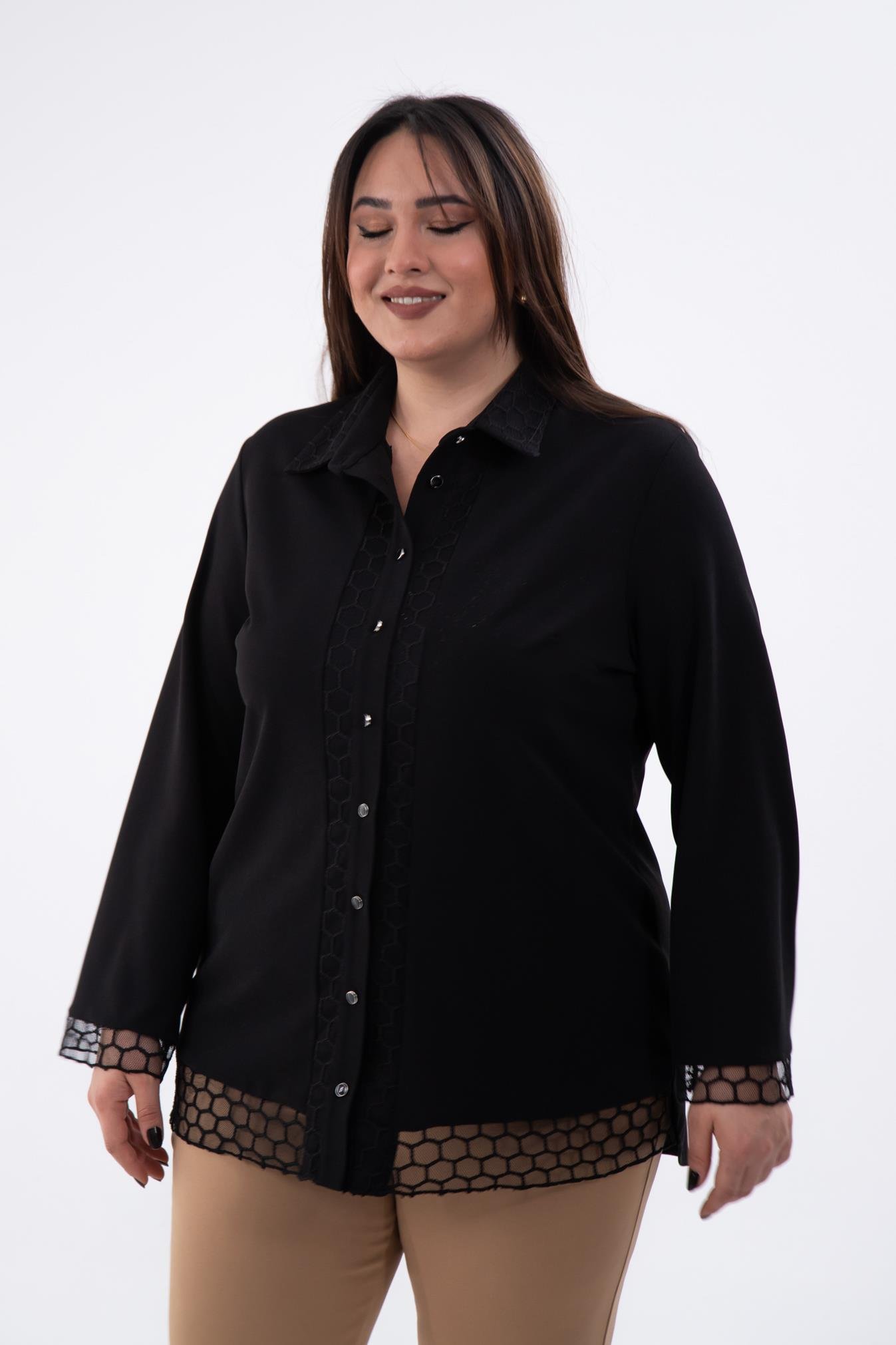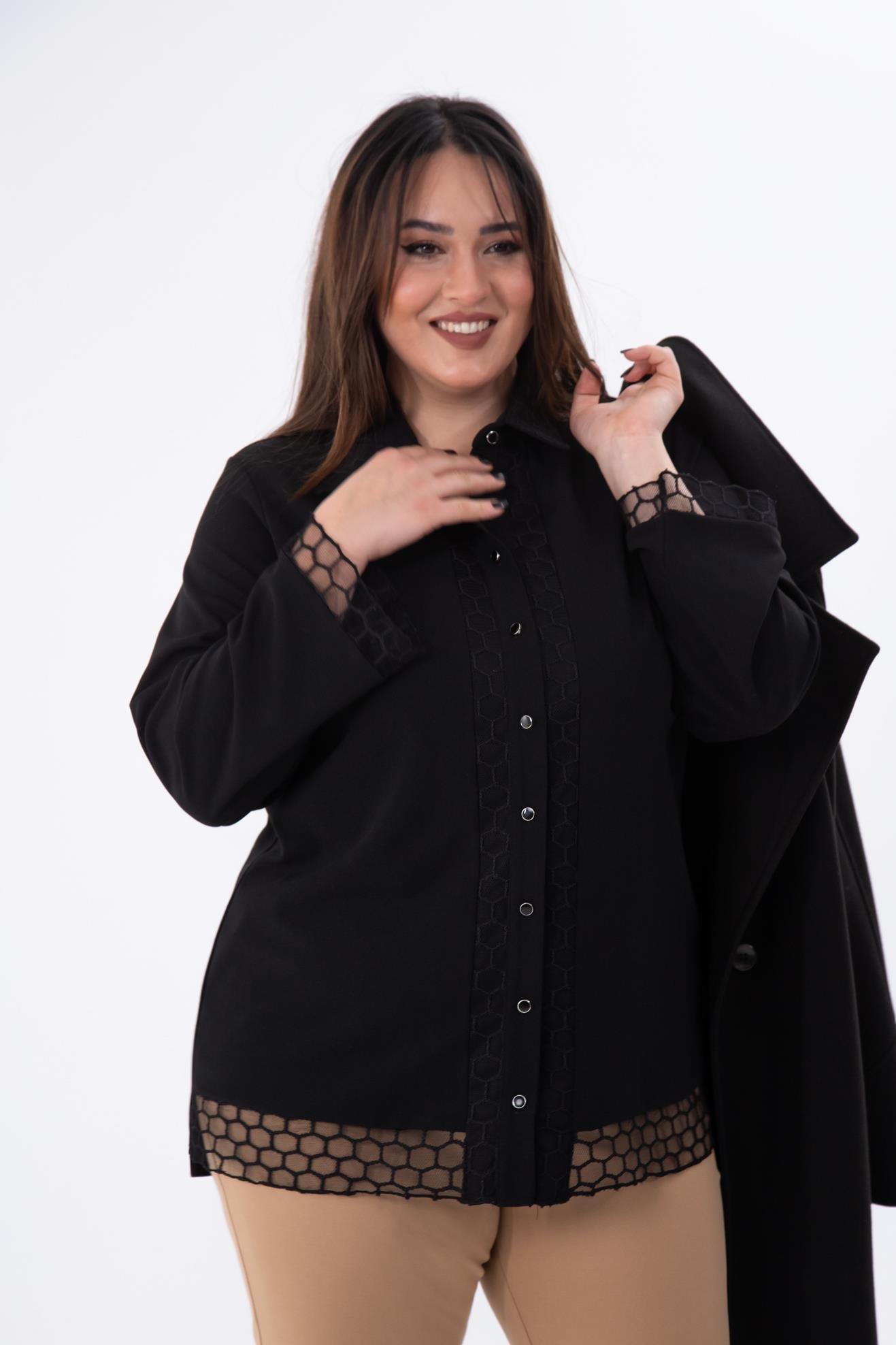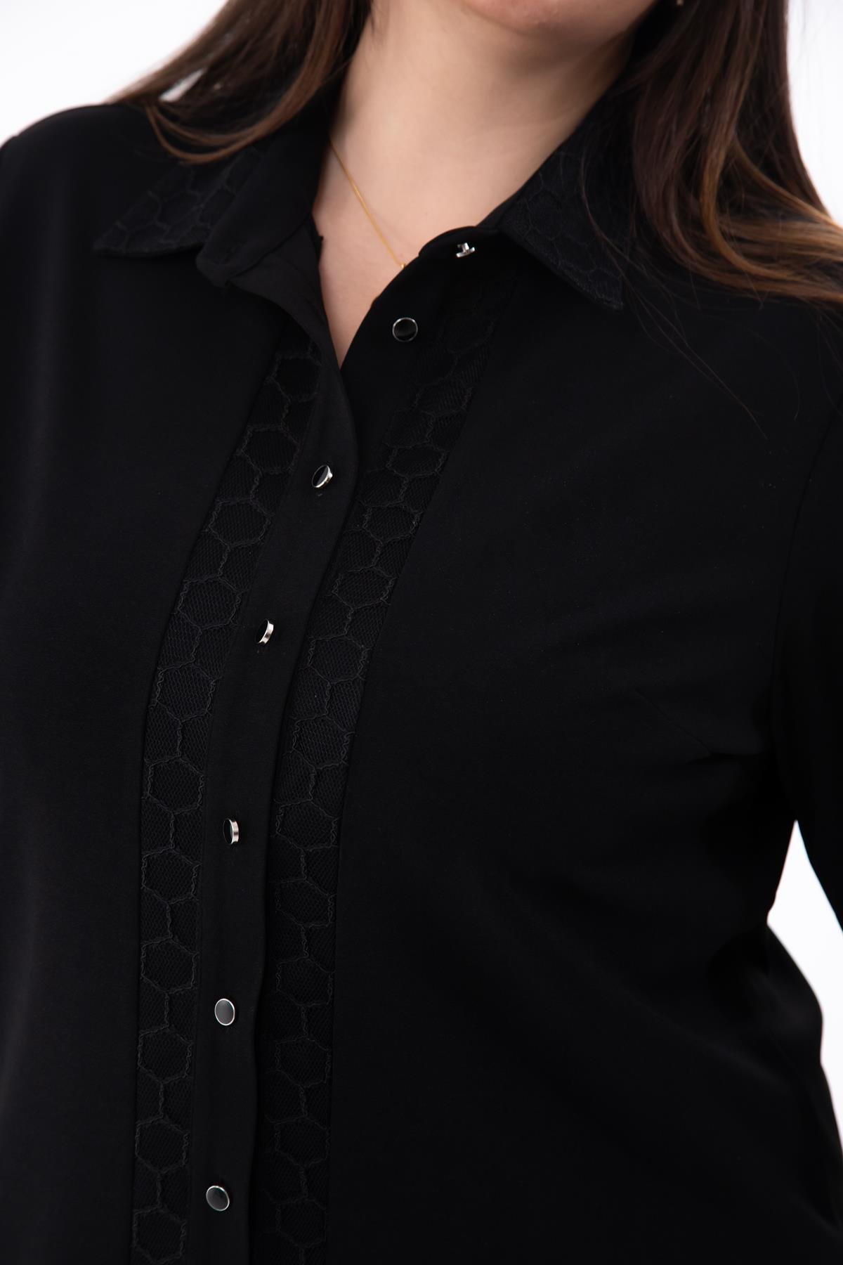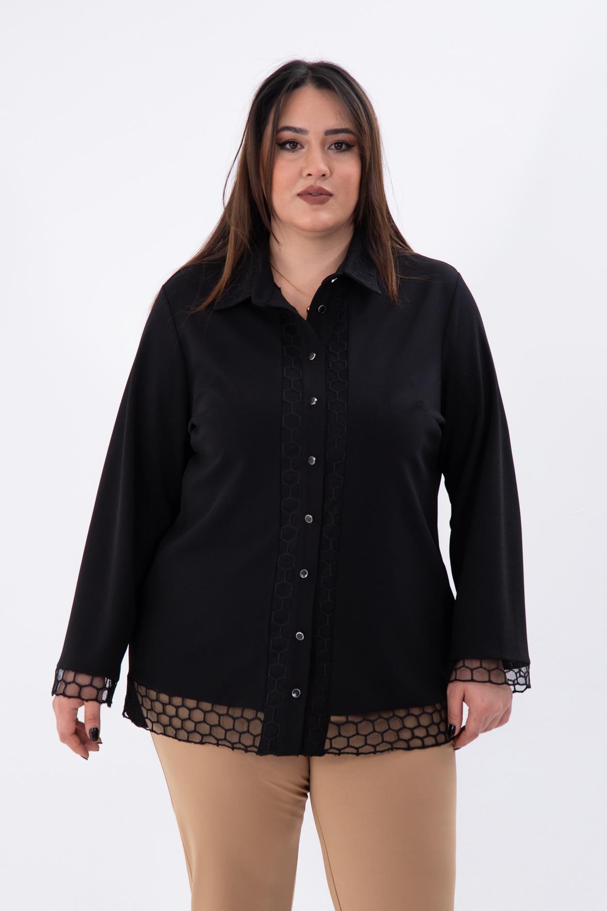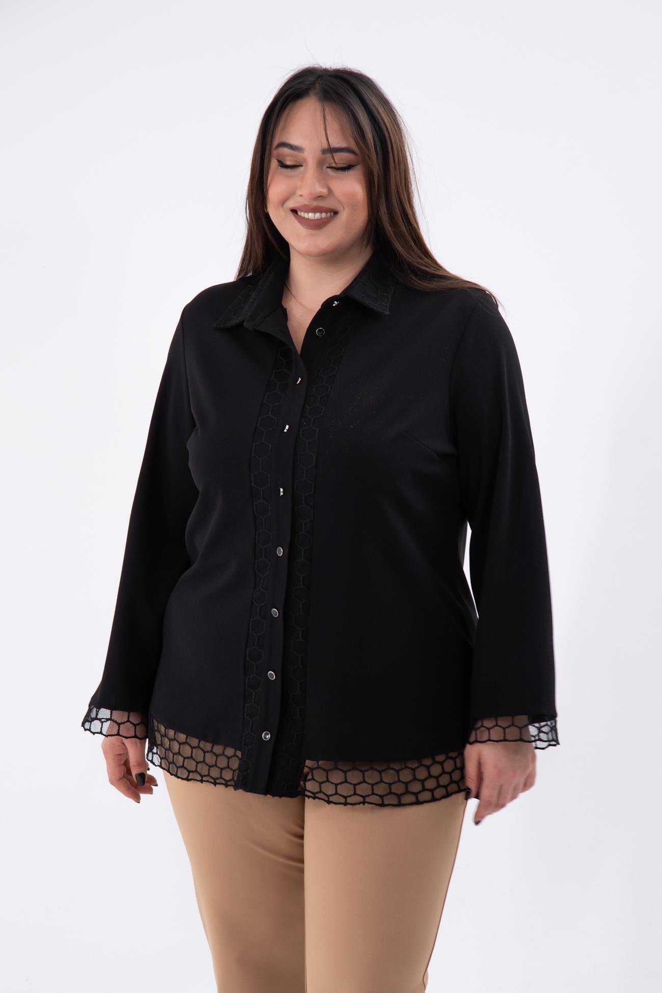 Büyük Beden 1211018 File Detaylı Gömlek Siyah