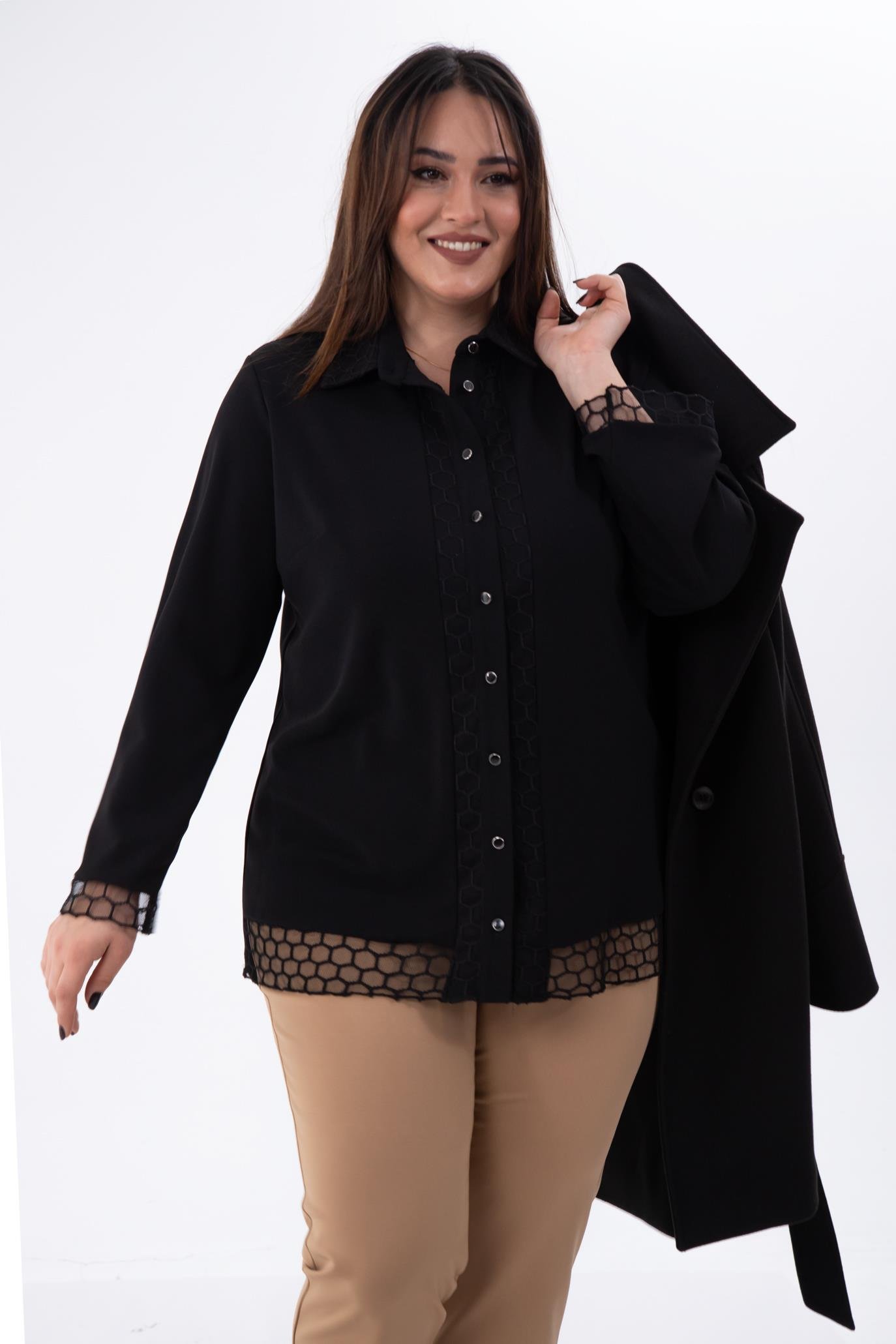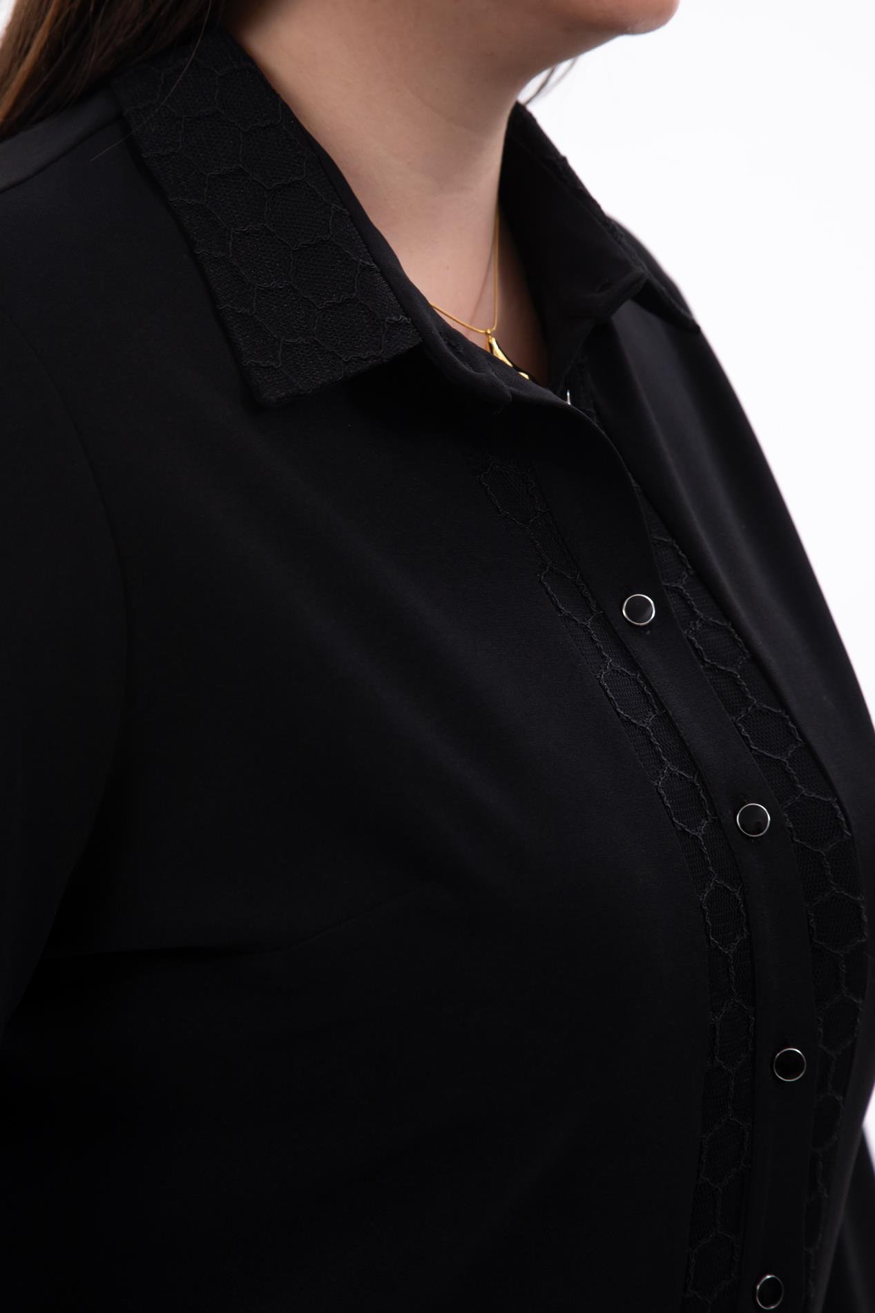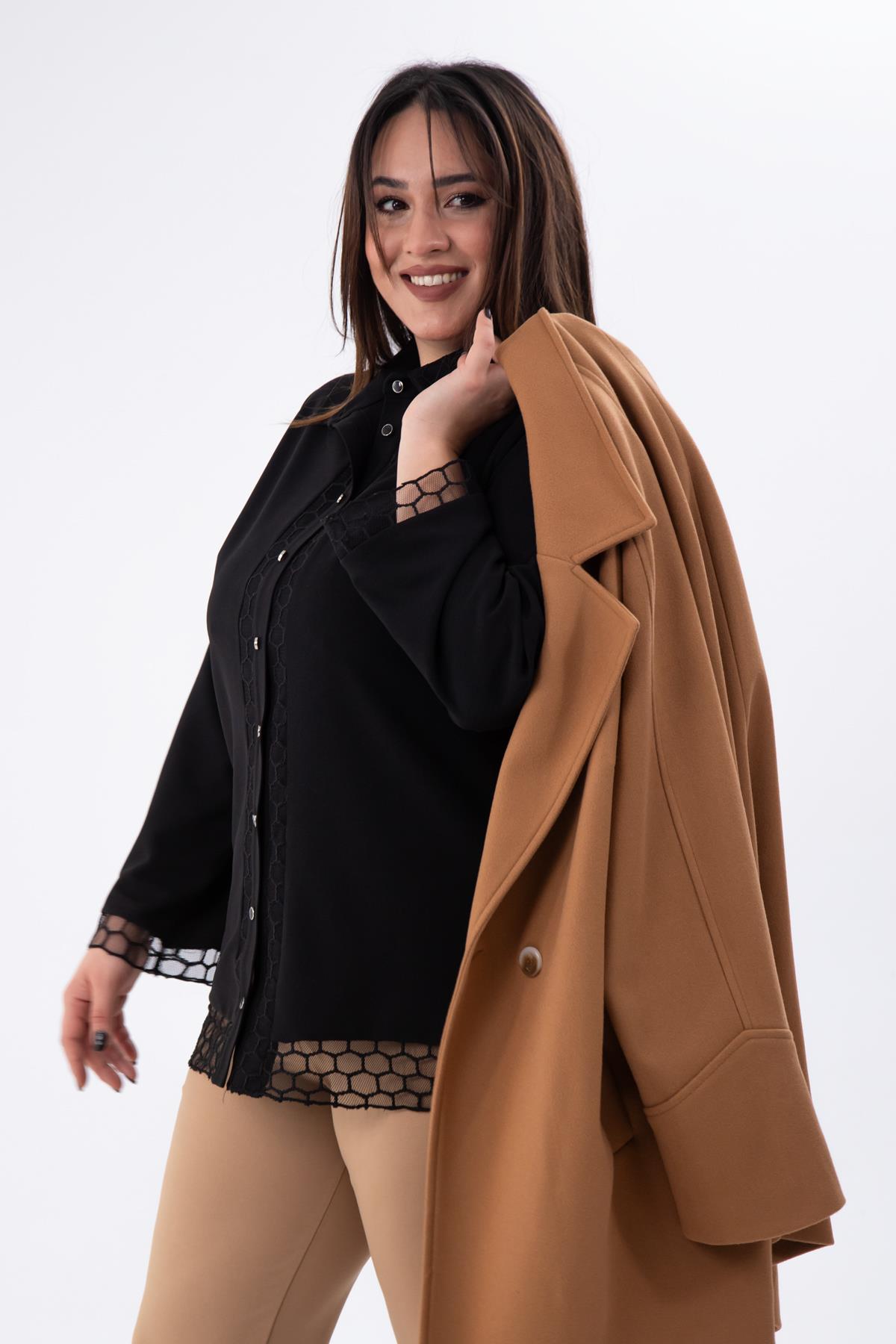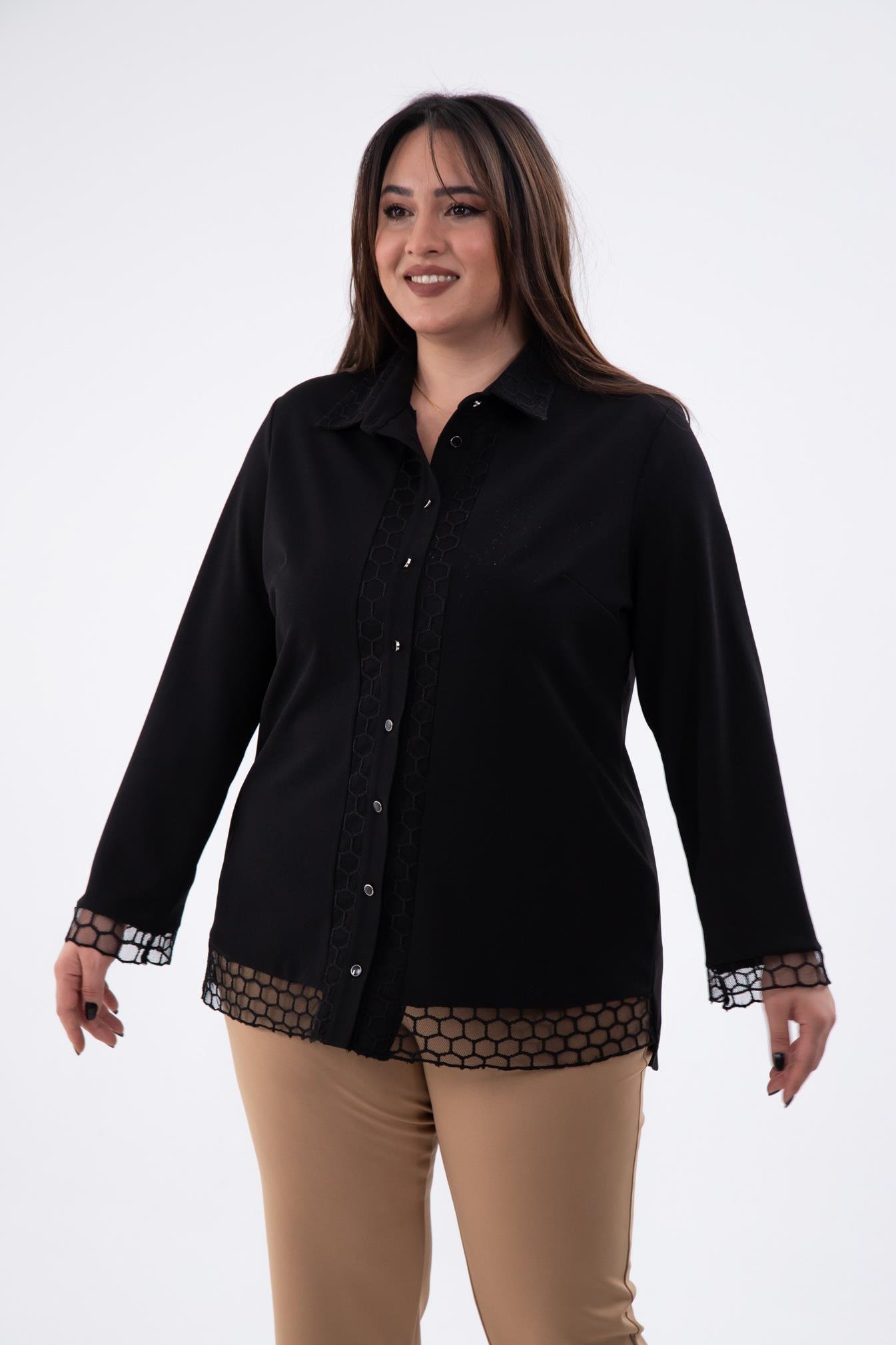 Büyük Beden 1211018 File Detaylı Gömlek Siyah