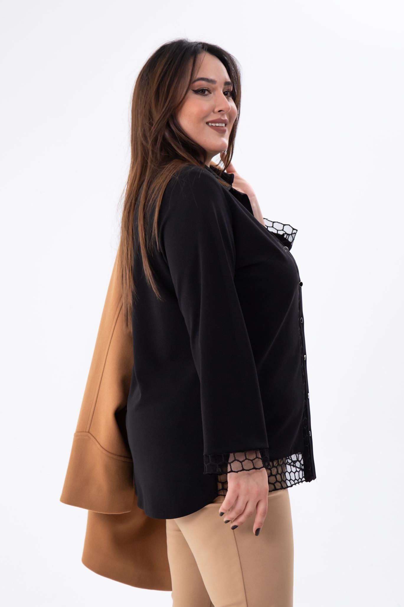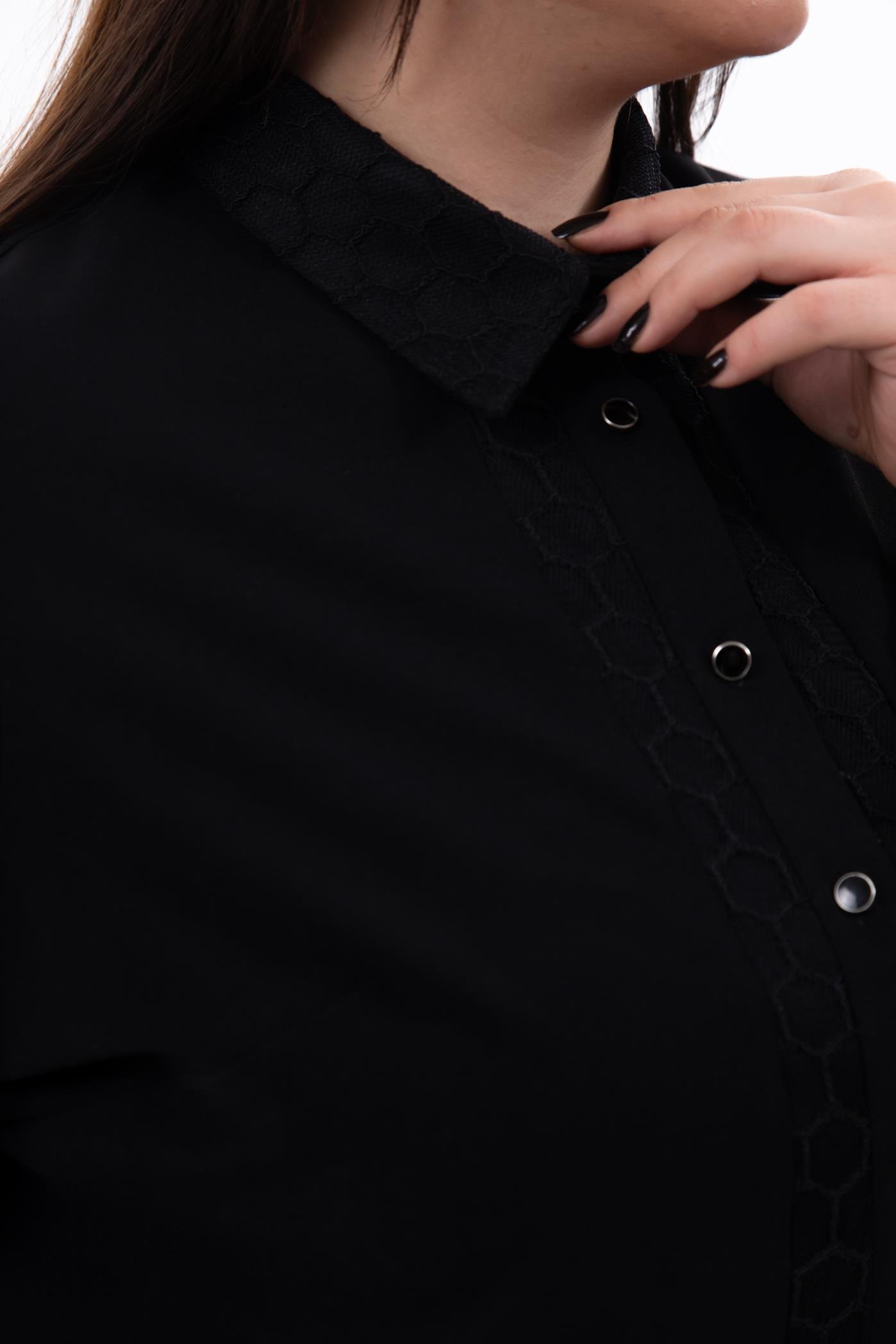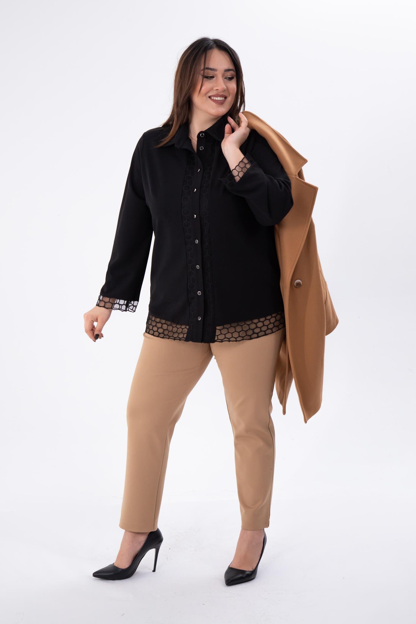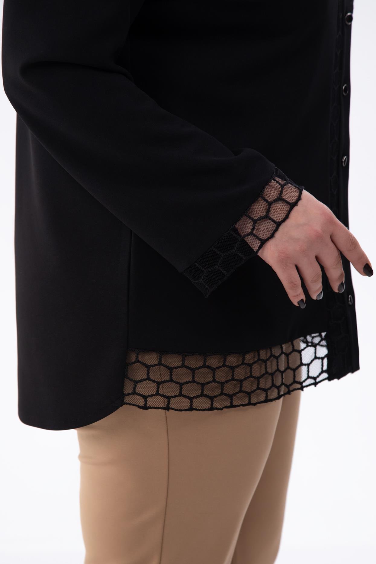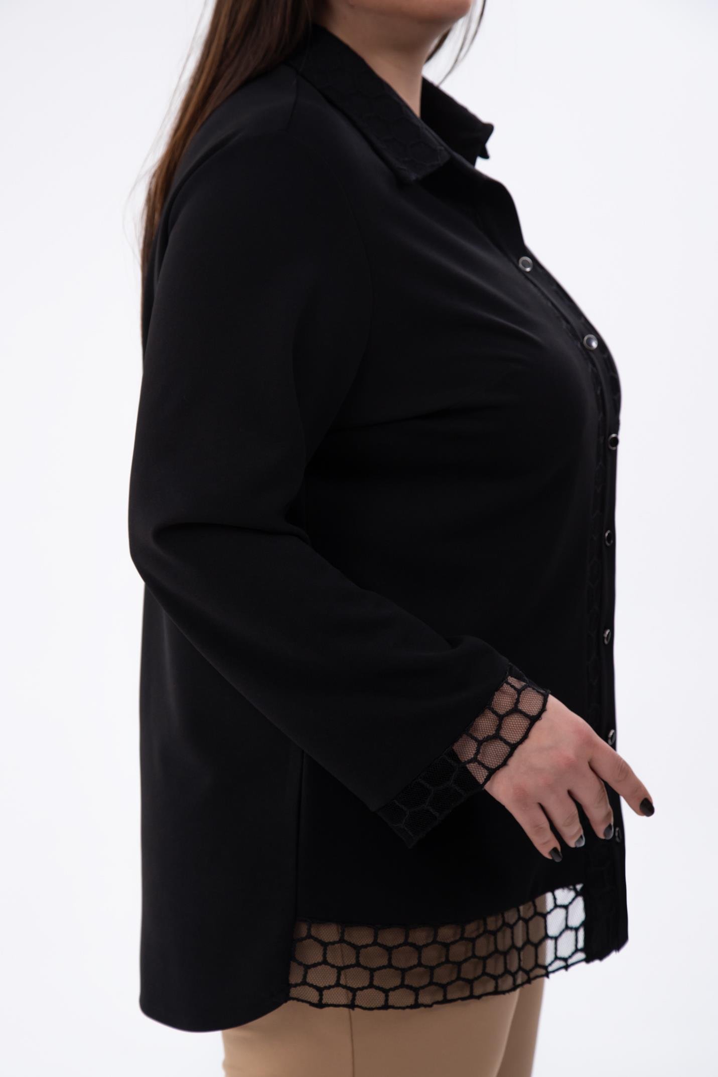 Büyük Beden 1211018 File Detaylı Gömlek Siyah